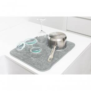 Tapete Escorredor De Louça Em Tecido Brabantia Cinza Claro Ótimo para deixar escorrendo os copos, esta é a nova solução para o antigo costume de estender um pano de prato e colocalos em cima. Chega de ficar com a pia molhada e de sacrificar os panos de prato, deixe sua cozinha mais elegante e escorredor combina uma camada de espuma entre duas camadas de microfibra super absorventes de alta qualidade e altíssima hidrofilidade (poder de absorção de água). A espuma protege as peças delicadas como taças e cristais protegendo também a pia contra arranhões ou trincas. Sua absorção é 4 vezes maior que comparado com um pano de copa felpudo. A linha da Brabantia conta com um acabamento exclusivo em fosco. Design arrojado, clean e funcional para organizar e técnica:- Código: 4081301172- Marca: Brabantia- Conteúdo da Embalagem: 1 Tapete Escorredor- Especificações do produto:Pode ser lavado na máquina de lavarFácil de guardar quando não pois pode ser dobrado, não ocupando espaçoLavável na máquina a 60CSeque naturalmente, não passe a ferroNão use alvejante, amaciante de roupas ou secadoras- Material: : 85% polyester, 15% polyamide- Cor: Cinza Claro- Peso: 0,14kg- Dimensões: 41,8cm x 15,4cm x 2,5cm (AxLxP)- Garantia: 2 Anos