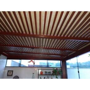 Estique o forro sobre o pergolado e grampei, pregue ou parafuse o mesmo sobre as pérgolas, corte o excesso e aplique a cobertura de sua preferência (telha sanduiche, vidro, policarbonato, etc)