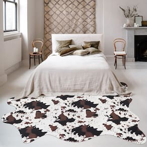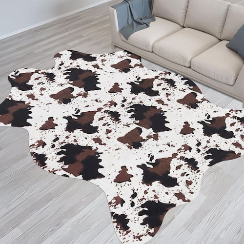 Este lindo tapete de couro sintético bovino é um lugar macio para sair da cama, banheira ou simplesmente colocá-lo embaixo de uma pequena mesa. Nosso tapete de couro sintético é projetado para dar um toque rústico boêmio a qualquer cômodo, dando vida à sua sala de estar, quarto ou entrada! Perfeito para usar como tapete de chão ou decoração de parede. Perfeito para o canto da área --- Tapete decorativo para o fundo da cama, escadas, embaixo da mesa, móveis, frente da lareira, trailer, embaixo do piano, mesa, sofá.