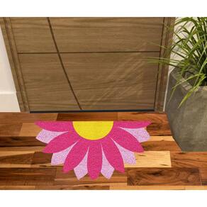 Tapete tipo Capacho Vinil com fibras entrelaçadas e costado emborrachado com arte pinta em tinta vinílica especial.