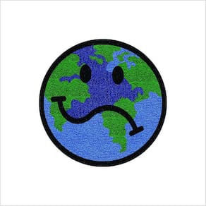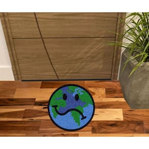 Tapete tipo Capacho Vinil com fibras entrelaçadas e costado emborrachado com arte pinta em tinta vinílica especial.