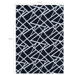 Tapete Geométrico Preto Cinza 135x200cm Retangular Escritorio Quarto Casal Jacquard.