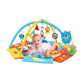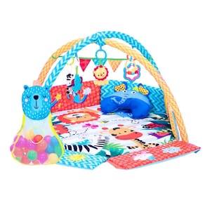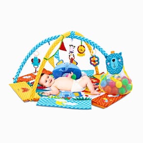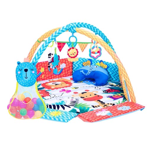 - Conteúdo da Embalagem: 1 Tapete, 2 Arcos, 5 Brinquedos estimulantes 1 Travesseiro em formato de animal, 1 Saco de bolas de caton