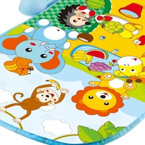 Tapete de atividades com piano vai divertir e entreter o bebê. O piano possui luzes e teclas com muitas músicas e pode ser ajustado na posição vertical ou na horizontal e também pode ser removido e ser utilizado apenas o tapete acolchoado. Possui também um arco móbiles. Tapete leve, portátil, acolchoado e lavável.