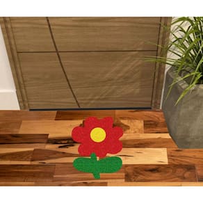 Tapete tipo Capacho Vinil com fibras entrelaçadas e costado emborrachado com arte pinta em tinta vinílica especial.