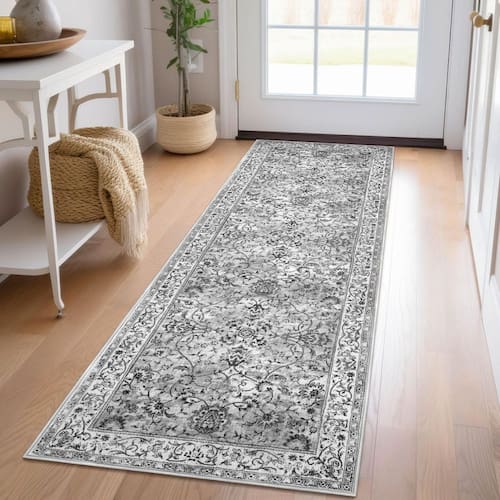 Volte no tempo e adicione um toque de elegância ao seu espaço de vida com nosso tapete de corredor com estampa floral vintage de lã sintética, disponível exclusivamente na Amazon! Charme vintage delicado: nosso corredor de entrada apresenta designs florais intrincados inspirados em padrões atemporais, infundindo sua casa com uma atmosfera clássica e romântica. As cores suaves e a estampa delicada tornam este tapete lavável uma peça versátil que complementa vários estilos de interiores, do vintage e chique ao moderno e minimalista. Lã sintética luxuosamente macia: experimente o máximo em conforto sob os pés com nosso material de caxemira sintética, este tapete de corredor oferece uma sensação de pelúcia, macia e luxuosa comparável à caxemira real. É perfeito para criar um recanto aconchegante na sua sala de estar, quarto ou canto de leitura. Decoração de casa versátil: este tapete de corrida 2x5 não é apenas um revestimento de piso; é uma peça de destaque. Coloque o tapete antiderrapante na sua sala de estar para adicionar sofisticação, no seu quarto para um toque de romance ou no seu escritório para criar um ambiente de trabalho sereno. Também é perfeito para berçários, proporcionando uma área de lazer macia para seus pequenos. Ideal para todos: se você é um amante de decoração vintage, um pai procurando uma área de lazer macia para seus filhos ou apenas alguém que aprecia as coisas boas da vida, este tênis lavável é para você. Seu design atemporal e sensação luxuosa o tornam adequado para pessoas de todas as idades e gostos. Fácil de cuidar: não deixe sua aparência delicada enganar você; nossos tapetes para corredores são tão bonitos. É fácil de limpar e manter, garantindo que permaneça com aparência de novo por muitos anos. - Cor: O tapete é impresso em cinza e branco. Devido ao processo de impressão e variações de iluminação, a cor real pode parecer mais clara com um tom azul ou verde sutil em comparação com as fotos - Design impresso e macio: com designs autênticos, o tapete floral adiciona estilo a qualquer espaço. Feito de poliéster de alta qualidade, oferece um toque macio e mantém sua aparência vibrante com o uso regular, tornando-o um complemento durável e elegante para sua casa - Remova vincos: a embalagem dobrada garante fácil transporte. Para suavizar vincos, use um ferro de baixa temperatura sobre uma toalha úmida. Como alternativa, enrole o tapete ao contrário, use objetos pesados ou deixe que ele se achate naturalmente ao longo do tempo - Passador lavável na máquina: este tapete de tapete é fácil de limpar — lavável na máquina, aspirar, varrer ou limpar com um pano. Use um aspirador de baixa velocidade para evitar aglomeração, pois seu design fino e leve pode mudar com aspiradores mais fortes. Evite alvejante para preservar a cor - Design antiderrapante: nosso design profissional antiderrapante garante que o corredor 2x5 permaneça no lugar, reduzindo significativamente o risco de escorregões e quedas, proporcionando segurança de alto nível para famílias, especialmente aquelas com crianças e animais de estimação - Design de pilha baixa: garante que as portas abram suavemente sem obstruções. Ideal para corredor, cozinha, estúdios, quartos de crianças ou qualquer espaço onde você queira adicionar calor e conforto. Transforme sua casa em um retiro aconchegante com este tapete de corrida boho