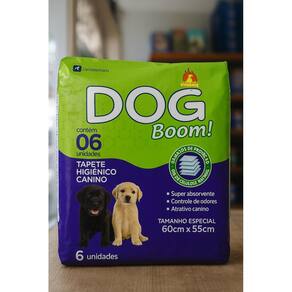 Tapete higiênico dog boom 60x55cm gel de celulose natural Dog boom tapete higiênico canino - 6 unidades 60cm x 55cm O dog boom é um tapete higiênico desenvolvido para oferecer máxima absorção, praticidade e higiene para cães de todas as idades. Ideal para uso diário em ambientes internos, ele mantém o local seco e limpo por mais tempo. Composto por 6 camadas de proteção e gel de celulose natural, o tapete proporciona uma absorção rápida e eficaz, evitando vazamentos e controlando os odores de forma eficiente. Conta também com fitas adesivas que fixam o tapete no chão e atrativo canino, que facilita o adestramento e o uso correto pelo pet.