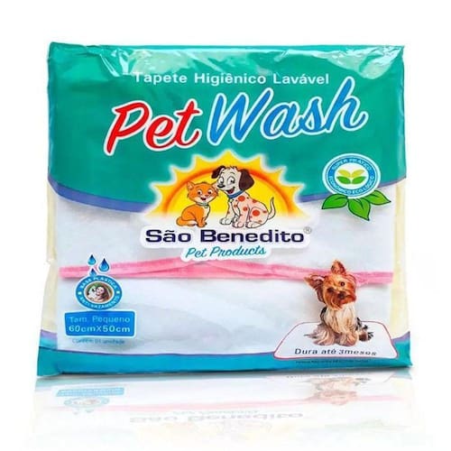 Tapete Higiênico Lavável Pet Wash P , ideal para cães de todos os portes, raças e tamanhos. Um produto ecologicamente correto, que deixa o ambiente muito mais higiênico, pois não deixa cheiro nem vazamentos. Excelente durabilidade, pode ser higienizado em máquina de lavar se preferir. Modo de usar: Coloque o tapete no local em que o pet esteja habituado a fazer necessidades. Após o uso lave o tapete com água corrente e pendure no varal para uma rápida secagem. Especificações: Parte superior composta por um manta de alta absorção de polipropileno, e na parte inferior com plástico polietileno que retém toda a urina não deixando vazar, costurado nas bordas e acabamento com viés. Disponível no tamanho P Comprimento: 60cm / Largura: 50cm Tamanho: 60x50cm Ean: 7908173500231