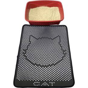 Tapete higiênico para gatos anti sujeira coletor de areia cor: preto o que é tapete coletor de areias o tapete higiênico coletor de areia para gatos foi desenvolvido para evitar que os gatos ao saírem de suas caixas, bandejas ou sanitários higiênicos, espalhem pelo ambiente, areia ou sílica presa em suas patinhas. Pra que serve - tapete coletor emborrachado lavável . - base antiderrapante. - possui compartimento para que a areia ou granulado armazenado, seja. - limpeza super simples e prática. - mantém o ambiente mais limpo para o seu pet. - design desenvolvido com desenho de um gato. - costura lateral altamente resistente, garantindo maior durabilidade. - tamanho ideal para todos os tipos de sanitários e bandejas higiênicas. - dobrável, fácil armazenamento. Como funciona para sua utilização, basta posicionar o tapete em frente a bandeja higiênica. Após utilizá-la, o gatinho pisará no tapete coletor de areia e os pequenos grãos de areia, ficarão armazenados nos pequenos orifícios do tapete. Não haverá a partir de então, qualquer grão de areia pela casa. Para reposição do que for acumulado no tapete, basta abrir a parte frontal do tapete e despejar dentro do sanitário higiênico. Dimensões do produto comprimento 68cm largura 56cm altura +- 1cm