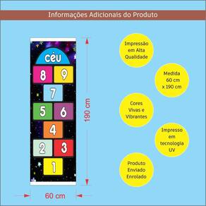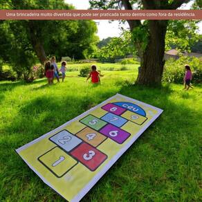 Tapete pedagógico - amarelinha Brincando e aprendendo com a amarelinha A amarelinha é um jogo clássico que desenvolve a coordenação motora, equilíbrio, concentração e raciocínio lógico das crianças. Este tapete pedagógico foi criado para tornar a aprendizagem mais divertida, estimulando habilidades essenciais de forma lúdica e interativa. Como jogar: 1. Jogue uma pedrinha ou marcador na primeira casa. 2. Pule com um pé só nas casas individuais e com os dois pés nas casas duplas. 3. Ao chegar ao final, vire-se e volte pegando a pedrinha. 4. Passe para a próxima casa e continue até completar o percurso. 5. Quem errar passa a vez para o próximo jogador Benefícios do tapete pedagógico: estimula a psicomotricidade e a coordenação corporal. auxilia no aprendizado de números e sequências. incentiva a socialização e o respeito às regras. pode ser Utilizado em diferentes ambientes sala de aula, recreação, terapias . Dica: varie o jogo adicionando desafios, como pular com os olhos fechados ou contar de trás para frente Vamos pular e aprender juntos Fabricado em lona vinilica com impressão uv Tamanho: 190 x 60 cm Homologação Inmetro: CE-BRI/IQB 002755 54760/21-032 Marca: Indústria Fenix