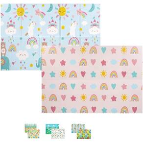Conteúdo da embalagem: 1 Tapete dobrável dupla face baby arco íris.