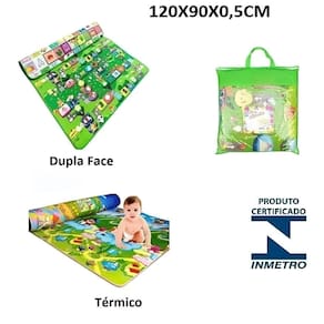Especificações:Medidas: Altura 120 cm, Largura 90 cm, Espessura 5 mmMaterial: Espuma atóxica, com superfície impermeável e fácil de limpar com água e sabão neutro.Isolamento Térmico: Excelente para pisos frios, proporcionando conforto térmico em qualquer estaçãácil e Armazenamento: Super leve, dobrável e acompanha uma bolsa ecológica com alça para facilitar o .