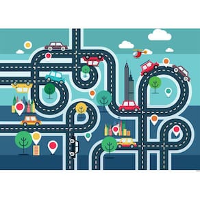 Tapete Infantil Emborrachado Antiderrapante Divertido 95cmx130cm City - Características Gerais do Produto: • Composição: Superfície 100% Poliéster e Base 100% Látex • Estampa: Estampa Digital