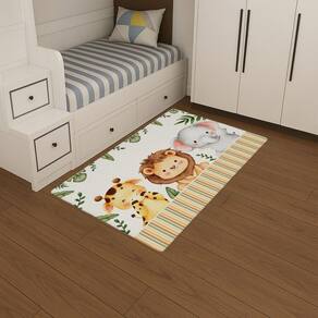 Transforme o quarto do seu pequeno com um toque de alegria nosso tapete infantil com estampas divertidas e coloridas é perfeito para deixar o ambiente mais aconchegante, seguro e cheio de personalidade. Estampas divertidas e exclusivas: com temas infantis encantadores animais, jardim, safari, unicórnios, dinossauros... , ele traz vida ao espaço e estimula a criatividade dos pequenos. Macio e seguro: feito com material confortável e antiderrapante, proporciona segurança e conforto para brincar, ler ou descansar. Tamanhos ideais para quartos e brinquedotecas Se adapta perfeitamente ao espaço infantil, combinando com caminhas, berços e móveis temáticos.