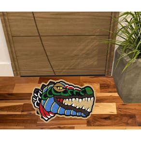 Tapete tipo Capacho Vinil com fibras entrelaçadas e costado emborrachado com arte pinta em tinta vinílica especial.