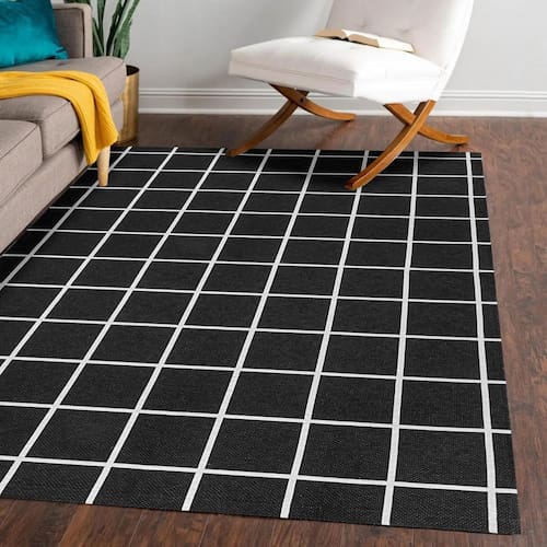 Tapete Jacquard Quarto 1,35M X 2,00M Pequeno Grid Preto