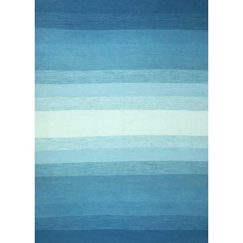 Ficha Técnica Acabamento da Borda : Debrum Artesanal Ambiente : Sala Aspecto da Superfície : Boucle sem pelos Composição da Superfície : Lã Cores Principais : Azul Espessura : Fino, 5 mm Estilo do Desenho : Degrade Forma de Produção : Artesanal,feito à mão Formato : Retangular Modelo : Kilim Natureza da Superfície : Natural Procedência : Índia Código : 028625 Tamanho Nominal (cm) : 150x200 Medida Real (cm) : 120x180
