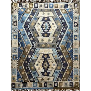 Ficha Técnica Acabamento da Borda : Franja Ambiente : Sala Aspecto da Superfície : Tear, trama Composição da Base : Dupla-face Composição da Superfície : Lã Cores Principais : Azul Espessura : Fino, 4 mm Estilo do Desenho : Geométrico Forma de Produção : Artesanal, feito à mão Formato : Retangular Modelo : Kilim Natureza da Superfície : Natural Procedência : Indiano Código : 30804 Tamanho Nominal (cm): 250x350 Medida Real (cm) : 280x354