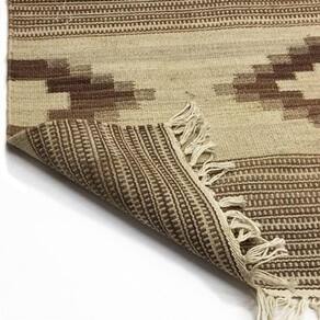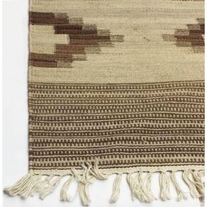 Ficha Técnica Acabamento da Borda : Franja Ambiente : Sala Aspecto da Superfície : Tear, trama Composição da Base : Dupla Face Composição da Superfície : Lã Cores Principais : Marrom Espessura : Fino, 5 mm Estilo do Desenho : Geométrico Forma de Produção : Artesanal, feito à mão Formato : Retangular Modelo : Kilim Natureza da Superfície : Natural Procedência : Indiano Código : 029496 Tamanho Nominal (cm) : 150x200 Medida Real (cm) : 120x180