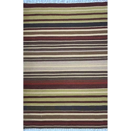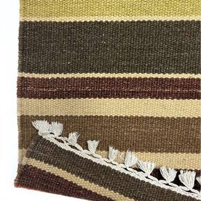 Ficha Técnica Acabamento da Borda : Franja Ambiente : Sala Aspecto da Superfície : Tear, trama Composição da Base : Dupla face Composição da Superfície : Lã Cores Principais : Marrom, verde, vermelho Espessura : Fino, 4 mm Estilo do Desenho : Listrado Forma de Produção : Artesanal, feito à mão Formato : Retangular Modelo : Kilim Natureza da Superfície : Natural Procedência : Índia Código : 019510 Tamanho Nominal (cm) : 150x200Medida Real (cm) : 140x200