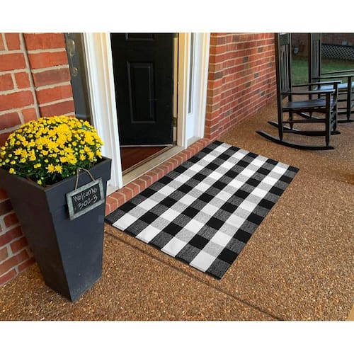 MULTIUSO - Este tapete está disponível em vários tamanhos e cores e é perfeito para porta, quarto, banheiro, cozinha, lavanderia, entrada e muito mais. ALTA QUALIDADE - Este tapete tem boa qualidade, feito de algodão, pode ser lavado à máquina, muito durável. Oferecemos uma ampla coleção de designs de tapetes para todas as estações e interiores. Para ver mais de nossos produtos, visite nossa casa ou . - Material do tapete de área: 100% algodão, tamanho: 90 cm × 149 cm - Decore sua casa com estilo com nosso tapete xadrez! Este clássico tapete xadrez preto, cinza e branco dará à sua casa a elegância casual que precisa! - Pode ser utilizado como capacho, tapete de banheiro, tapete de varanda, tapete de cozinha, tapete de apartamento, tapete de área, tapete de porta de entrada, tapete de sofá. Faz a combinação perfeita com capachos de boas-vindas! Receba seus convidados com elegância! - Melhor escolha para presente de dia das mães, presente de dia dos pais, presente de natal, presente de dia de ação de graças, presente de aniversário, decoração de casa. - Usar o aspirador de pó e alguns shakes geralmente é o que precisa! Lavar à máquina em água fria com configuração suave e secar na máquina em temperatura baixa.