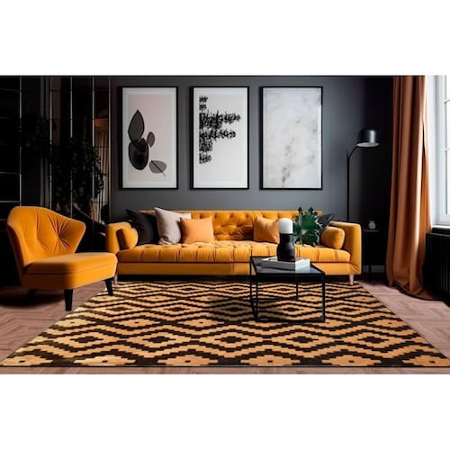 A RAYZA destaca-se pelo seu fino padrão de acabamento e por sua qualidade garantida. A alta qualidade dos produtos é obtida pelo aprimoramento contínuo das técnicas produtivas, qualidade das matérias primas e pela utilização de modernas tecnologias de produção. O MARBELLA é um tapete tipo veludo, produzido em tear Jacquard, com altíssima definição de desenho em suas estampas exclusivas e com excelentes e modernas combinações de cores. Possui toque macio com 5 mm de pelo, acabamento em overloque nas laterais e base antiderrapante. Seu manuseio e limpeza são fáceis devido à leveza do produto. O seu alto padrão de qualidade e ótimo custo-benefício encantam os nossos clientes e é por isso que ele está presente em inúmeros lares brasileiros, decorando e tornando ambientes mais aconchegantes, confortáveis e sofisticados. Atenção: Esse produto contém as seguintes cores: Caramelo e preto. Ficha Técnica Informações técnicas para esse produto Produto Tapete Marbella Elite Renaissance Qualidade Veludo Jacquard Densidade 672 pontos/m Batidas 800 linhas/m Pelos 1.075.200 Superfície 100% Poliéster Altura do Pelo 5mm Base Antiderrapante Fotos ilustrativas. Variações de cores podem acontecer em diferentes aparelhos/equipamentos. Contraste e brilho são configurados de forma diferente em cada marca de smartphone, monitor e televisão.