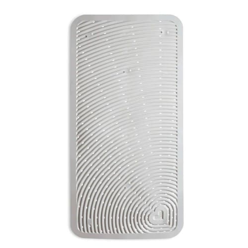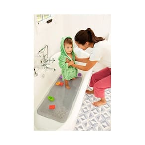 Este tapete de banho de segurança tem ranhuras em todo o design, criando uma aderência robusta e conforto extra. Ventosas fortes mantêm esse tapete seguro na base da banheira ou chuveiro - este tapete funcionará com as superfícies mais lisas. Além disso, os orifícios de drenagem ajudam a impedir o crescimento de mofo e bolor. Ótimo para bebês ou adultos!