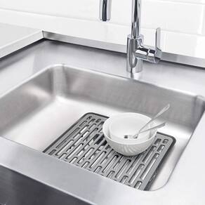 Tapete Para Pia Em Silicone 31x30cm Oxo Cinza O tapete da OXO fornece uma almofada para proteger as superfícies da pia e a louça contra lascas e arranhões. O design robusto fornece estrutura enquanto os pés de silicone antiderrapantes mantêm o tapete no lugar. Os pés também elevam o tapete para promover o fluxo de água e ar para secagem rápida. Ficha técnica:- Código: 4080570767- Marca: OXO- Conteúdo da Embalagem: 1 Tapete para pia- Especificações do produto:Tapete resistente ao mofo e é fácil de limpar- Material: Silicone, sem PVC- Peso: 0,25kg- Dimensões: 31,24cm x 30,73cm x 2,16cm (AxLxP)- Garantia: 3 Meses Contra defeito de fabricação Sobre a Marca - Há mais de 25 anos atrás, Sam Farber percebeu que sua esposa, Betsey, estava tendo problemas para segurar confortavelmente o seu peeler por conta da artrite, o que o fez pensar: por que as ferramentas comuns da cozinha costumam machucar as mãos? Por que não existem ferramentas confortáveis e fáceis de usar? E assim ele descobriu uma oportunidade de ajudar não só sua esposa, como tambem diversas outras pessoas. Desde então, a OXO criou em toda sua história mais de 1000 diferentes produtos para diversas finalidades e áreas da casa, e todos sob o conceito do Design Universal, que tem como foco a facilidade de utilização, a qualidade, a funcionalidade e a eficiência comprovada.