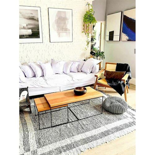 Tapete Para Sala Dupla Face Boho Algodao Lavável 2,50X2,00MTapete dupla face boho100% artesanalFeito a mãoFeito em tear manualCada produto é unico, por isso leves variações podem acontecer, como por exemplo no desenho do barreado, cores e texturas.Nas fotos possuem o frente e verso do tapete.Tamanho: 2,50x2m produto artesanal, seu tamanho pode sofrer alterações.Material: 100% fios de algodão - resíduo textilTecido maleável.Modelo com franjas.Instruções de lavagem: o tapete pode ser lavado na máquina separadamente, utilizar sabão neutro e o ciclo de roupas delicadas.Não colocar alvejante e nem amaciante.Não deixar de molho, nem usar agua quente.Evite a exposição contínua ao sol.Após o ciclo da máquina estender imediatamente.Produto delicado.Pode haver alteração de até 10% no tamanho total após lavagem.Para lavagem a maquina verifique a indicação de peso.Peso aproximado por tamanho:250x2m: 13kg