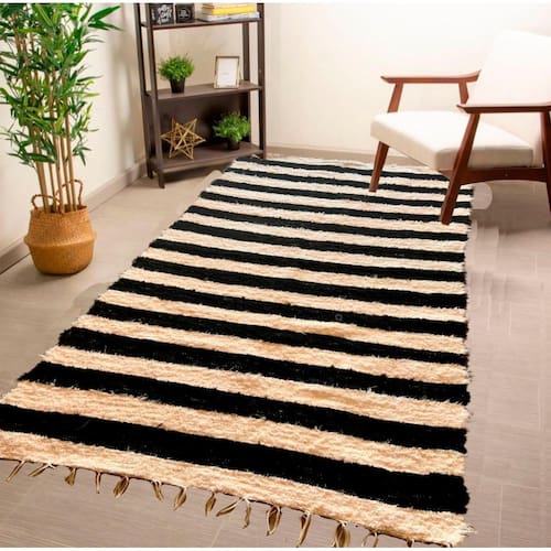 Tapete Para Sala Felpudo Listra Preto Boho Chic 2,00X1,00