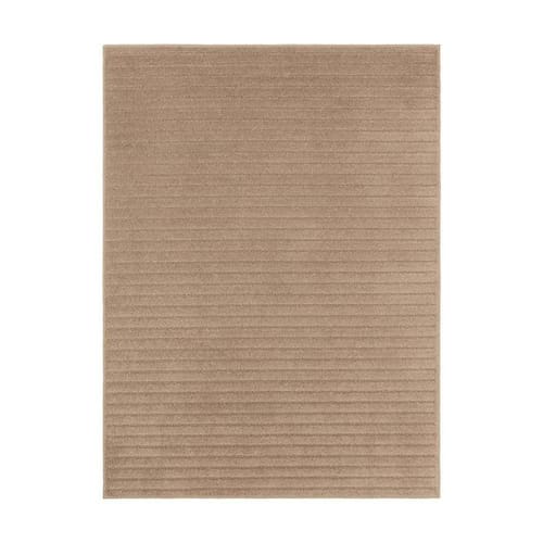 Este tapete é feito de 100% polipropileno, um material durável e resistente a manchas e desbotamento. Com uma altura do pelo de 12mm, o tapete é suave e confortável ao toque, proporcionando uma sensação agradável sob os pés. Além disso, os detalhes de baixo relevo em 6mm adicionam um elemento de textura sutil que complementa perfeitamente o design de listras.