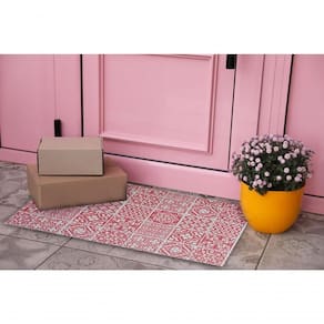 Tapete Passadeira Capacho Emborrachada Antiderrap. 0,65x1,00 Azulejo Vermelho Branco