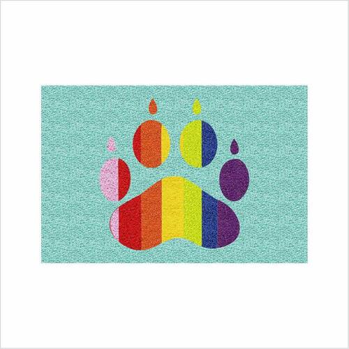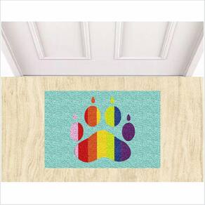 Tapete tipo Capacho Vinil com fibras entrelaçadas e costado emborrachado com arte pinta em tinta vinílica especial.