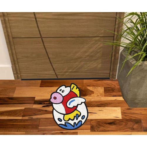 Capacho Vinil com fibras entrelaçadas e costado emborrachado com arte pinta em tinta vinílica especial.