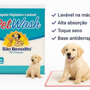Tapete Pet Higiênico Lavável 50x60 PetWash São Benedito Tapete Higiênico Lavável PetWash 50x60cm - Reutilizável e Econômico Ofereça mais conforto e higiene para seu pet com o Tapete Higiênico Lavável PetWash. Ideal para cães de pequeno porte, esse tapete é a solução perfeita para quem busca praticidade, economia e sustentabilidade no dia a dia.