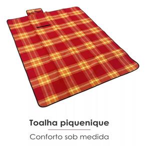 Toalha para Piquenique Tapete Vermelho Xadrez 130x170cm Impermeável com Bolsa Integrada