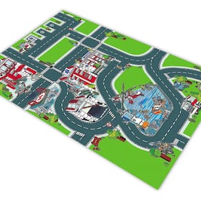 Importante: - não é um tapete peluciado e nem emborrachado - nossas pistas não são da marca 'hot wheels',apenas são aptas para brincar usando os carrinhos - as pistas não acompanham carrinhos - pode sofrer pequenas alterações de cores em relação a tela, tanto quanto pequena variação nas medidas. Medida total: 140x100cm
