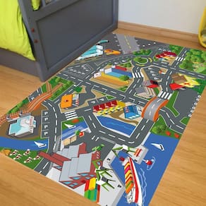 Tapete pista carrinhos hotcars cais lago prédio 1,8x1,2m
