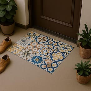 Receba boas energias logo na entrada da sua casa com o tapete decorativo. Feito com material macio, resistente e antiderrapante, ele é ideal para ambientes internos como halls, entradas e portas - trazendo charme e acolhimento para quem chega.
