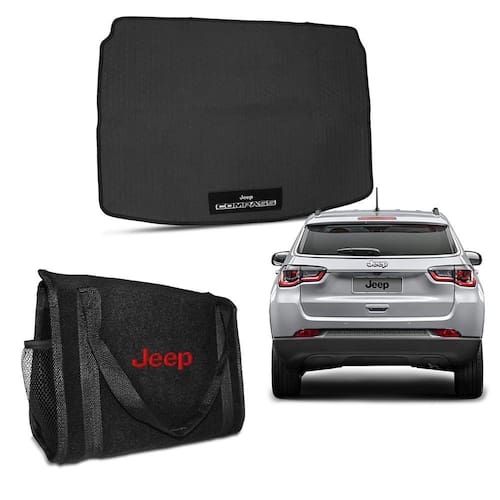 TAPETE PORTA MALAS JEEP COMPASS 2017 A 2023 BORRACHA PVC + BOLSA ORGANIZADORA PORTA MALAS CARPETEO Tapete Porta Malas é um acessório automotivo que serve para proteger o maleiro do carro, evitando o acúmulo de sujeira na traseira do veículo. Fácil de limpar, é mais prático manter a organização.Nesse kit, o tapete automotivo acompanha uma Bolsa Organizadora com o logo da montadora bordado para ferramentas e acessórios em geral, ideal para ter mais espaço ao carregar as bagagens.Compatível com:- JEEP COMPASS 2017- JEEP COMPASS 2018- JEEP COMPASS 2019- JEEP COMPASS 2020- JEEP COMPASS 2021- JEEP COMPASS 2022- JEEP COMPASS 2023DIMENSÕES APROXIMADAS BOLSA ORGANIZADORA: - Comprimento: 36cm - Largura: 18cm - Altura: 30cmCARACTERÍSTICAS TAPETE PORTA MALAS:- Confeccionado em borracha PVC com base antiderrapante- Acabamento lateral em viés- Bordado em carpete com o nome do veículo- Acomodação sob medida no porta malas do veículoCARACTERÍSTICAS BOLSA ORGANIZADORA: - Cor: Preto - Material: Carpete com espessura de 3mm - Logo da montadora bordada - Tira autocolante na parte interna e traseira da bolsa - Alça de transporteITENS INCLUSOS: - 01 Tapete para porta malas - 01 Bolsa organizadora para porta malasOBSERVAÇÕES: - Garantia de 3 meses contra defeitos de fabricação - Imagens ilustrativas - Não nos responsabilizamos pelo uso inadequado do produtoNão deixe de conhecer nossos outros produtos!