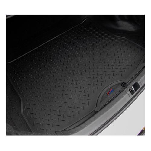 o tapete universal flash emborrachado trás total segurança para carregar qualquer coisa no seu porta malas sem trazer danos a seu carro. Conta com uma superfície trilhada que impede a sujeira de espalhar, sendo impermeável e fácil de limpar. . O grande diferencial do nosso produto fica por conta de sua composição ecológica sendo 100 por cento reciclável e reforçado. Especificação técnica: produzido em pvc disponível na cor preta base antiderrapante em pvc pinado lavável e impermeável tapete sem odores modelo universal - m necessita de recortes excelente resistência ótimo acabamento