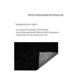 Contem: 2 Tapetes Retangulares Medidas: 66 x 180 cm Composiçao da superficie: 100% Poliester Composiçao da base: 60% Poliester e 40% Polipropileno Base Antiderrapante e acabamento em pelo sintetico de 15mm