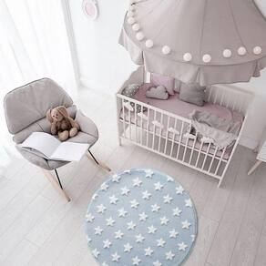 Tapete Quarto De Bebê Infantil Redondo Mimo Estrelas 100cm - Jolitex Azul.. -