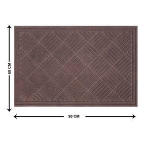 Resumo das principais caracteristicas e especificacoes: Produto: Tapete; Areas Indicadas: Internas; Formato: Retangular; Largura: 60,00 m; Comprimento: 90,00 m; Espessura: 9,00 mm; Tonalidade: Marrom; Material: 85% Borracha; 15% Poliester; Antiderrapante: Sim; Comodo Indicado: Multiuso; Modelo: Hayden; Alta retencao de sujeira; Garantia do Fabricante: 6 mes(es)." Marca: Não Informado