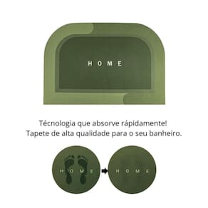 A cor verde, de tom médio a escuro, confere uma sensação vida, limpeza e aconchego. A escrita em uma tipografia clara e elegante, com um tom claro, entrega leveza e elegância ao ambiente. A base é confeccionada em borracha antiderrapante, oferecendo aderência eficiente a pisos lisos, como cerâmica ou porcelanato. Esse recurso garante segurança, evitando deslizamentos e proporcionando estabilidade, além disso, a superfície do tapete é densa, macia e aconchegante ao toque. Feito com fibras grossas, ele possui uma textura espessa que é fofa e confortável para pisar, perfeita para quem gosta de andar descalço, possuindo uma tecnologia que absorve os pés e sapatos molhados em minutos, sem deixar marcas