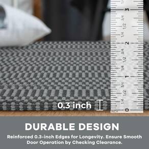 - Informações principais: Espessura: Tapete: 0,2 pol. Borda: 0,3 pol.; Material: algodão+poliéster; cor: carvão/cinza escuro. Nota: As bordas dobradas reforçadas (0,3 polegadas) prolongam a vida útil do tapete. Verifique a folga da porta para evitar que o tapete fique preso