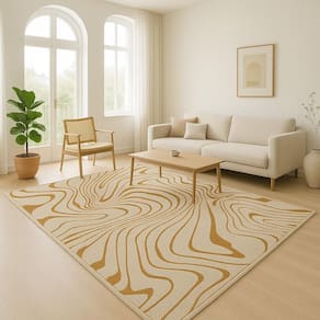 Tapete Sala 300X350Cm Sem Pelo Organico Bege Dourado Antider