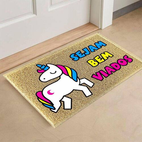 Tapete Sejam Bem ViadosTapete decorativo para sua casa.Características:Tamanho: 60 Cm X 40 CmMaterial: VinilPersonalização: PintadoCor Do Fundo: BegeBorda: Rebaixada 2cmCor Do Logo: Preto, branco, pink, azul claro. Marca: Endereço Do Kapacho