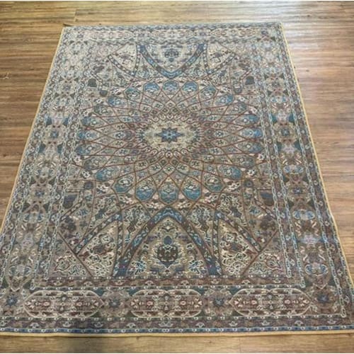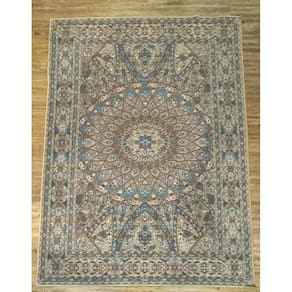 O Tapete Sala Tabriz, com dimensões de de 100x150 ate 200x300 cm disponiveis, é um produto de alta qualidade, com um design clássico e cor bege, marrom e azul.