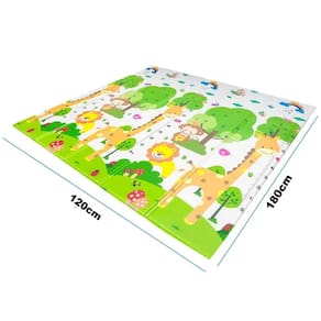 Principais Destaques • Dupla Face: Um lado apresenta um tema de Girafa e o outro lado um tema de trem, permitindo trocar o visual conforme a ocasião. • Material de Qualidade: Confeccionado em XPE, que é leve, resistente e fácil de limpar.